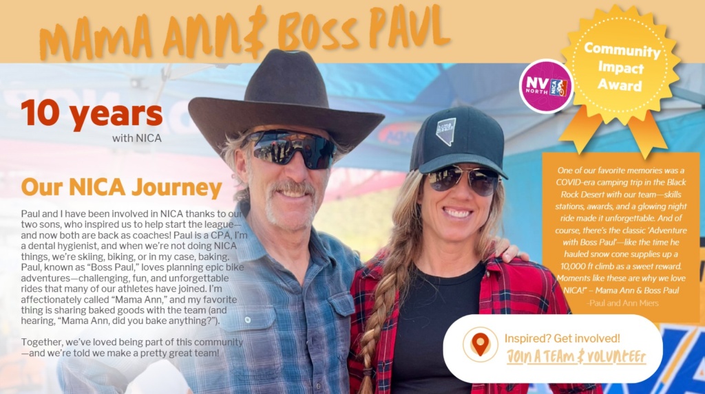 Ann, Paul and Sam also have worked with the Nevada North NICA league to make it what it is today.